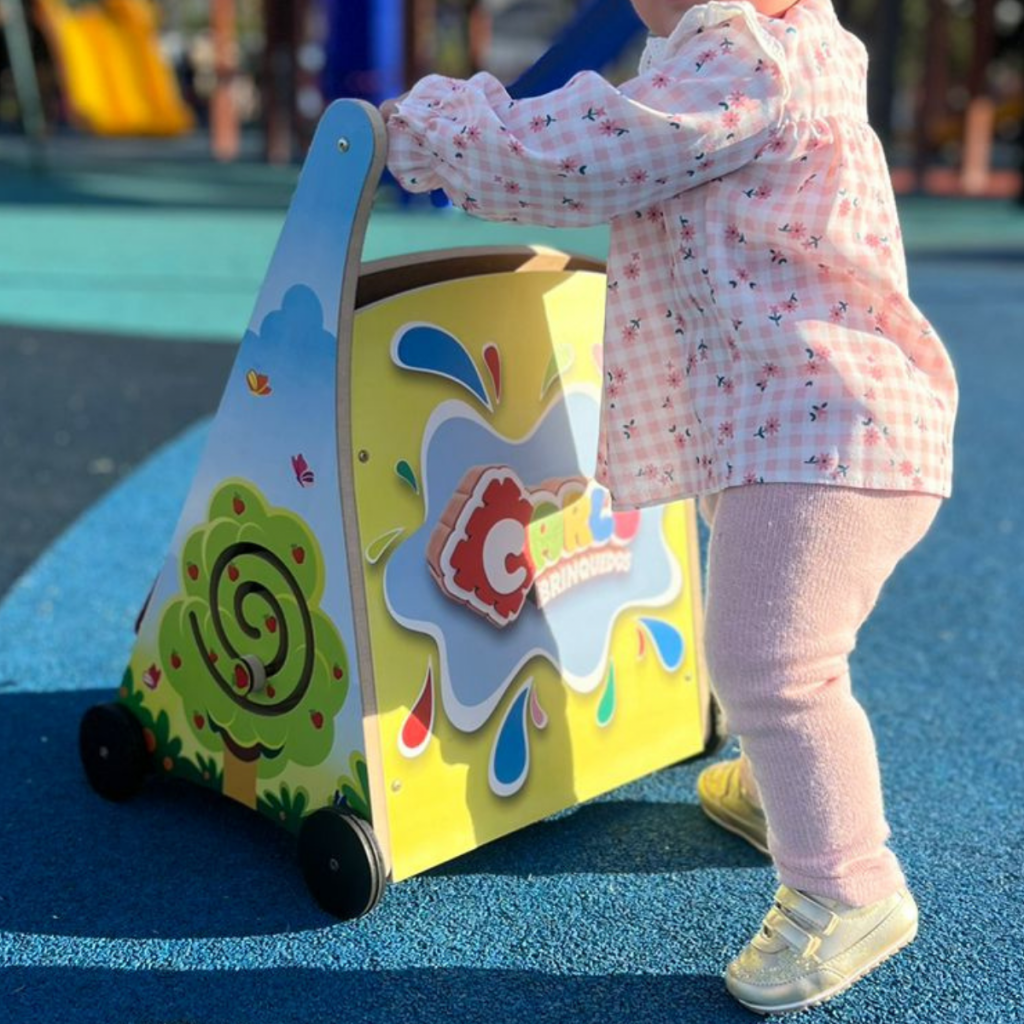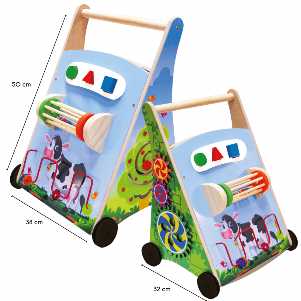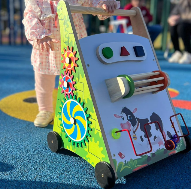 Objetivo: Auxiliar na locomoção dos primeiros passinhos com mais segurança e liberdade, ajudar a desenvolver o equilíbrio, desenvolver o cognitivo, a coordenação visomotora, identificar cores, formas.