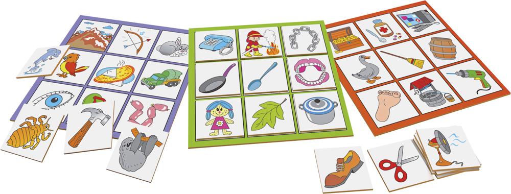 Descritivo detalhado: Confeccionado em M.D.F., 30 peças, composto por: 3 cartelas medindo 21 x 21 cm; 27 peças para sorteio, medindo 6 x 6 cm, serigrafadas com tinta ultravioleta atóxica. Embalagem: Caixa de madeira com tampa serigrafada medindo 24 x 24 x 3,5 cm. Lacrada com película de P.V.C. encolhível.