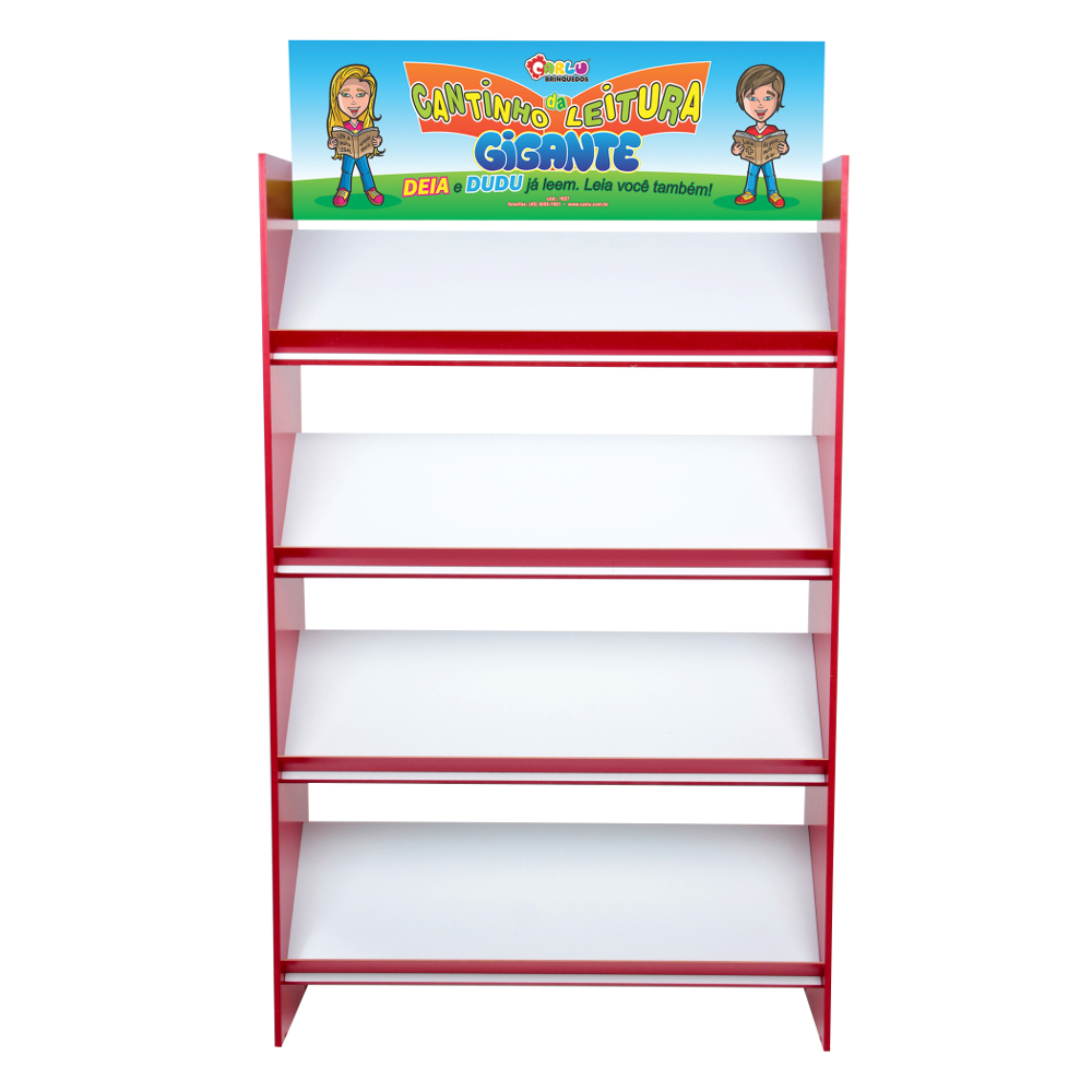 Descritivo detalhado: Confeccionado em M.D.F. - Cantinho (estilo prateleira) colorido, pintado e serigrafado com tinta ultravioleta atóxica. Medida total do "Cantinho + testeira" - 94,5 x 30 x 170 cm. Embalagem: Caixa de papelão.